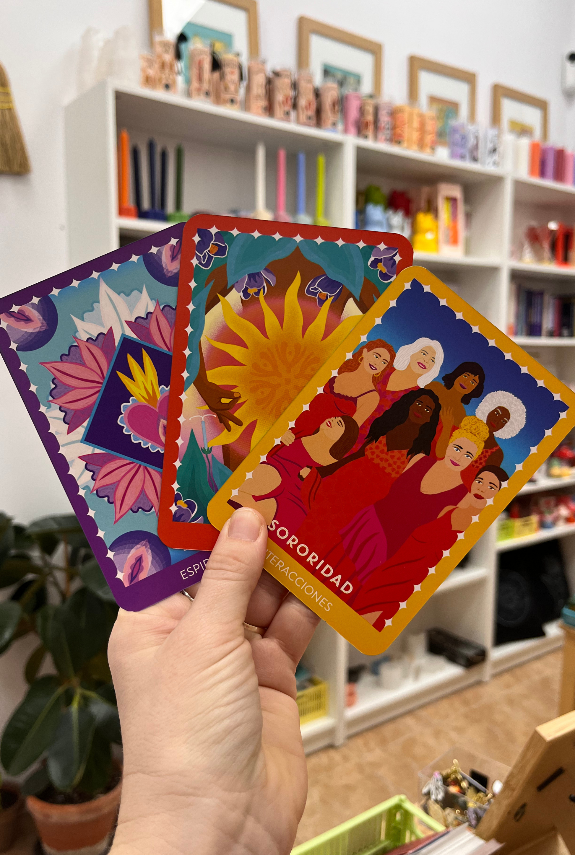 Clitoráculo te invita a conectar con tu sexualidad a través de sus 49 cartas, repartidas en siete temáticas: salud, temporalidades, espiritualidad, interacciones, sociedad, erótico-sexual y pruebas.