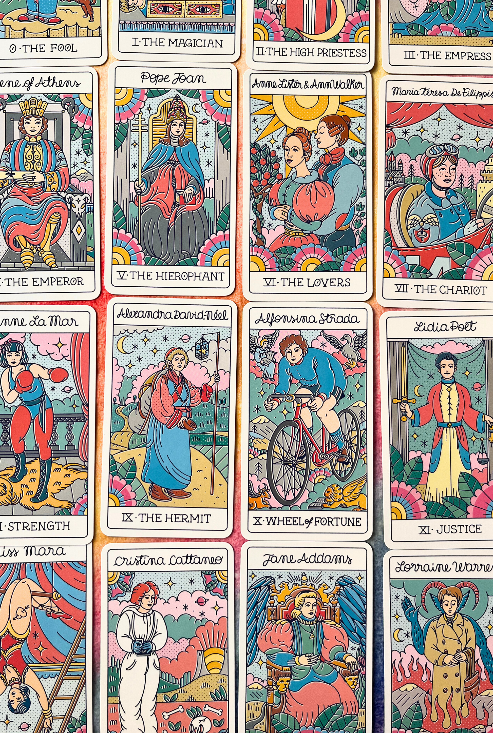 Celebra a las mujeres más icónicas de la historia con esta baraja única de 78 figuras femeninas extraordinarias — desde científicas y artistas hasta políticas y deportistas que cambiaron el mundo.