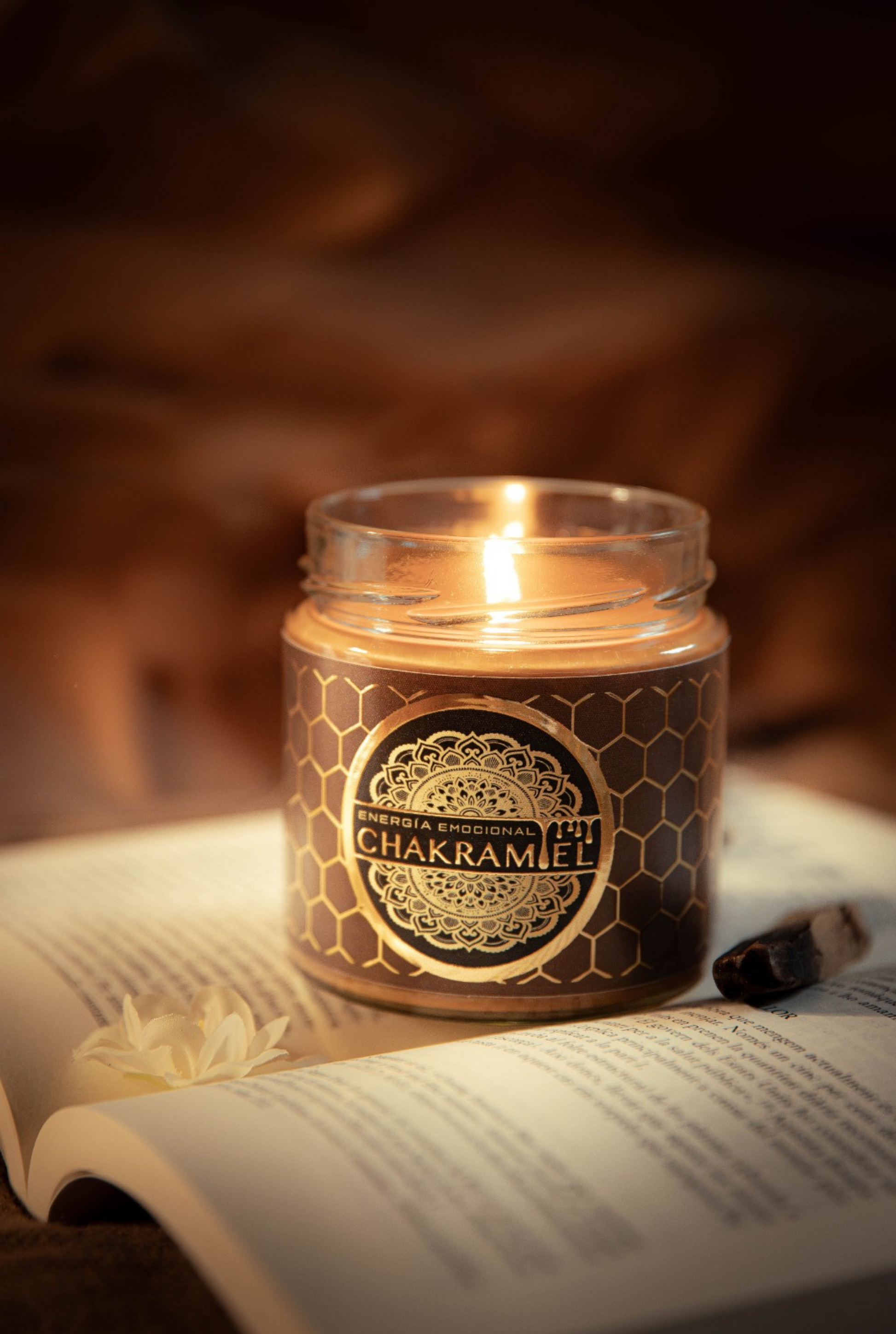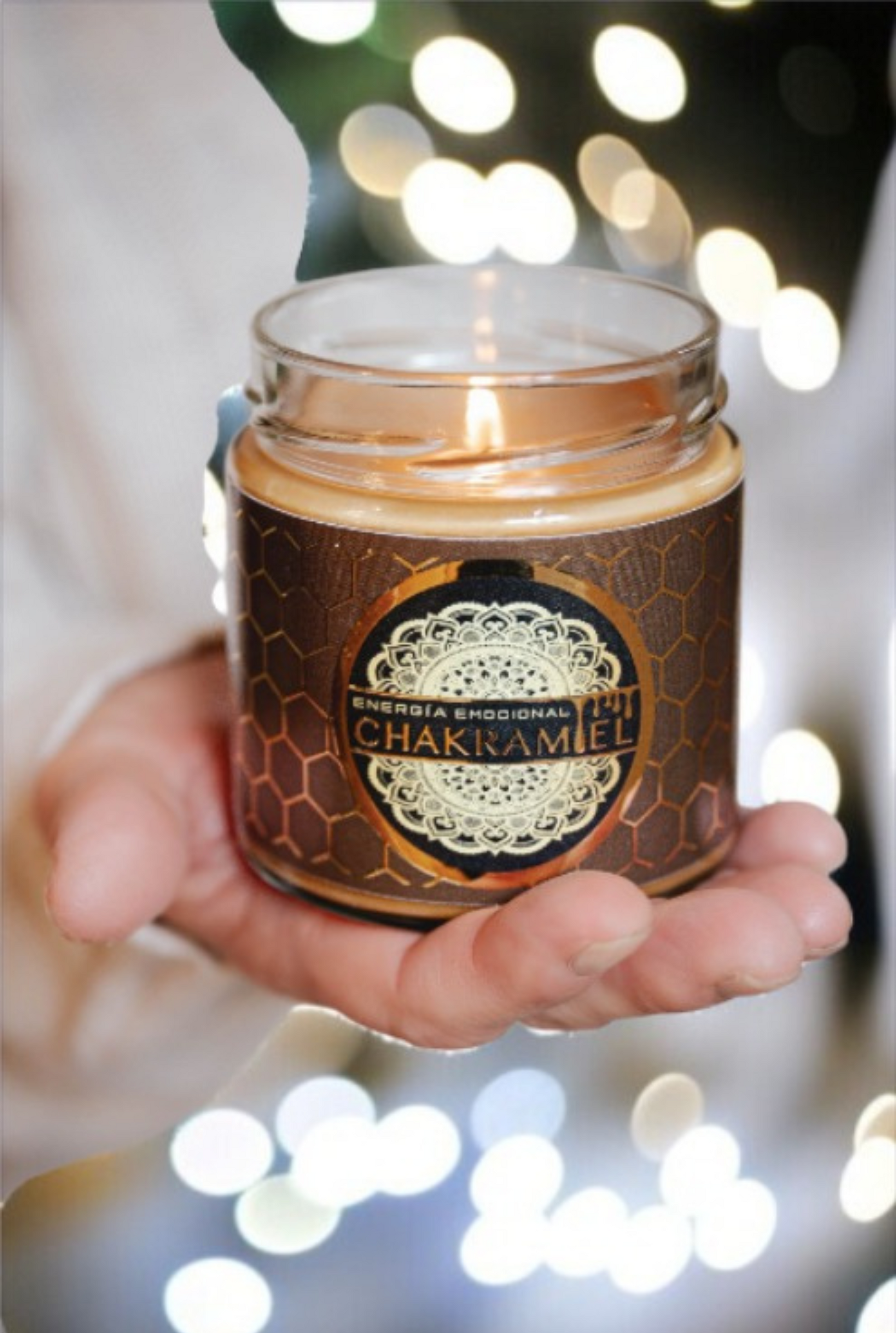 Cada vela Chakramiel está diseñada para acompañarte en momentos de calma y conexión. Su delicada esencia de miel desprende un dulce aroma que inspira serenidad, mientras que el aceite esencial de palo santo purifica tu espacio, atrayendo magia, abundancia y buenos propósitos a tu vida.